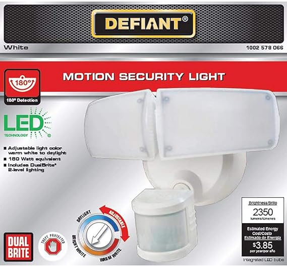 The new defiant led motion security light with dualbrite chases away night time darkness.
