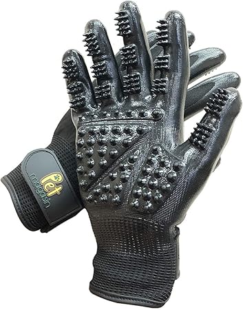 Slip on the delomo pet grooming glove and keep your pet s coat looking clean and healthy while reducing the hair scattered about the house. It has soft rubber tips that are gentle and safe on the pet s fur. The delomo pet glove is without a doubt one of the best glove style grooming tool for cats around today. Delomo five finger de shedding glove can be used to remove pet hair from all hair types whether you own a dachshund or a golden retriever the glove will work like a charm if you re a multi pet household the glove can be used to catch hair from cats horses and other pets too.